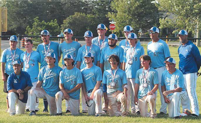 The 2023 18U Kingsville Knights with their silver medals. Front row, from left, are coach Ruggirello, Ty Murray, Christian Verzoza, Cooper Campbell, Ottavio Ruggirello, Jimmy Hildebrand, Coach Reive. Second row, from left, Matteo Ruggirello, batboy Tommy, Emit Paquette, Josh Mann, Nick Wright, Riley Lu, Alex Archer, Manager Murray, Coach Wright. Back row, from left, Nathan Smith, Colin Brownlee. SUN photos by Paul Forman