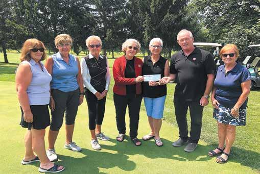 The organizing committee of the Bounty of the County golf tournament presented a cheque to the Salvation Army Food Bank in Leamington. From left to right are Brenda O’Reilly-Brunelle, Sherry Fleming, Ruth Slote, Major Judi Wickens of the Salvation Army, Sharon Bee, Major Ron Wickens of the Salvation Army, and Joan Kettle. Absent: Lindsay Friesen. Photos submitted
