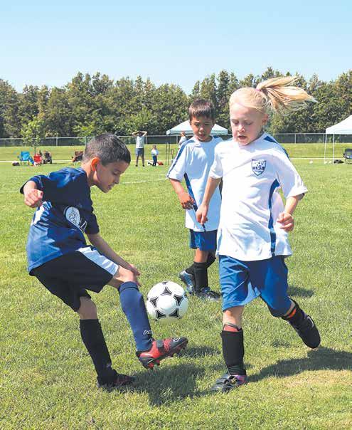 The Leamington Minor Soccer Association hosted the Sun County Travel soccer windup tournament on the weekend of August 18-20 as teams from Essex, Tilbury, Wheatley, Harrow, Blenheim, Stoney Point, Leamington and Kingsville converged on the soccer fields east of town. Above is action from a 7U game between the Leamington Lightning and Kingsville Adamo Construction as Leamington’s Everleigh Wiens (right) battles a Kingsville player for the ball.