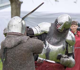 Here, Erg Grey Guard (right) takes on an opponent in a sword fighting demonstration.