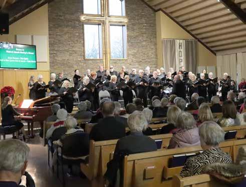 The County Classic Chorale presented their annual Christmas program in Leamington this past weekend with shows at Faith Mennonite Church on Saturday, November 23 and Sunday, November 24. This year’s program was titled ‘A Dickens Christmas’ and featured actors reading selections from Charles Dickens ‘A Christmas Carol’, interspersed with several musical selections performed by the choir. In the top photo, the choir, directed by Paul Wharram and accompanied by pianist Olga Nesterenko, performs one of their songs. In the photo on the right, actors David Murphy (playing Marley’s ghost) and David Dent (playing Ebenezer Scrooge) perform a short scene from A Christmas Carol. A third show will be held on Sunday, December 1 at Harrow United Church. SUN photos