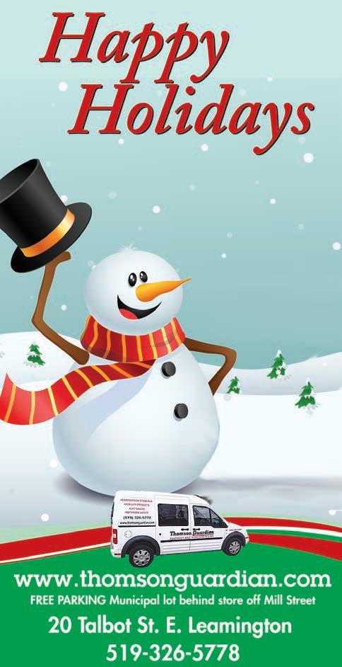 Vol. 13, Issue 44 Wednesday, November 30, 2022 FREE ORDER ONLINE 24/7 petespaint.ca 519-322-2555 157 Talbot St. E. Leamington Leamington 519-326-9010 PLUMBING • HEATING • HVAC SERVICES • Footcare Now Available with our Registered Advanced Footcare Nurse Call to book today 519-325-0007 519-325-0007•194 Talbot St E, Unit 6 Leamington • www.bioped.com • leamington@bioped.com ORTHOTICS CLINIC LEAMINGTON FREE QUOTES & COMPETITIVE PRICING OPEN: Monday to Friday 8:00 AM - 4:00 PM Windows & Doors Eavestroughs Siding Insulation 1964 Rd. 3 East, Kingsville 519-326-8551 www.tmurrexteriors.com