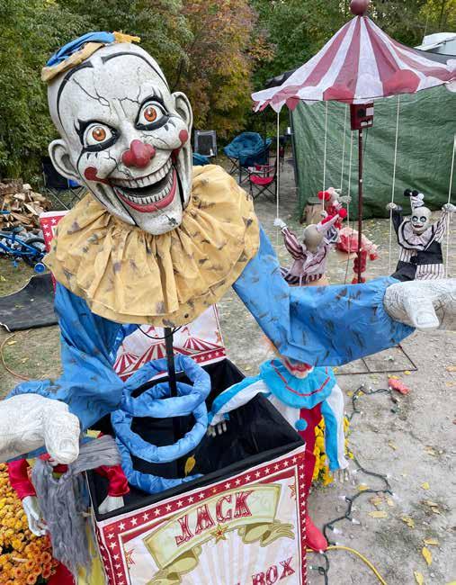 Wheatley Provincial Park was once again bustling with trick-or-treaters on Saturday, Oc tober 8 as they held their annual Halloween night for campers and visitors alike. The Thanks giving weekend tradition has been going on for a number of years inside the park, with most campsites decorated with ghosts, goblins and scary creatures to entice the kids to stop for a visit. Above is one of the creative campsites which featured a giant jack-in-the-box and some scary clowns on a swing. SUN photo