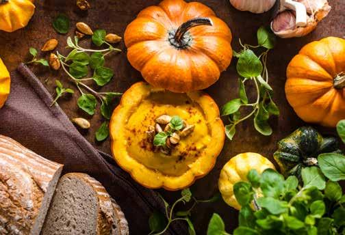 • Soups: Create a creamy pumpkin soup with spices like nutmeg and ginger for a comforting starter.