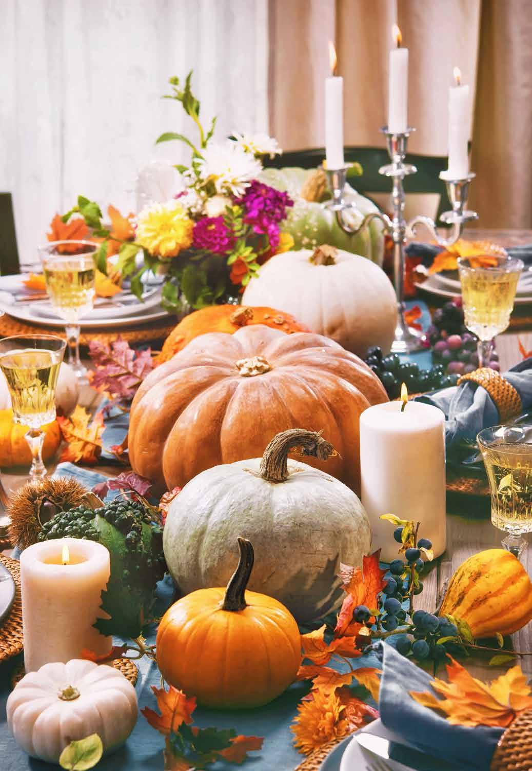 Use items from nature, such as pumpkins, gourds, and pinecones, to create a cozy atmosphere. Place them on your dining table or mantel.