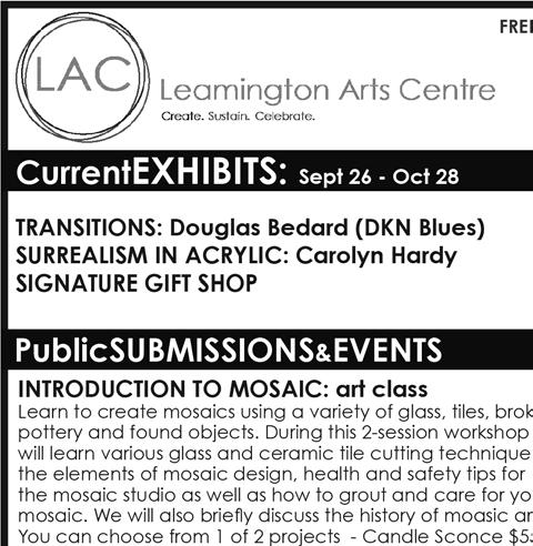 BUFFET STYLE TURKEY DINNER - Leamington United Church, 9 John Street. Saturday, November 4, 4:30 - 7:00 p.m. Adults $15, children ages 7-12 $8, children 6 & under free. Advanced ticket sales only. Cut off date: November 1, 2017. No take-out dinners. For tickets call the church office, 519326-9461. Menu: Turkey dinner with homemade pie. oc25-no1