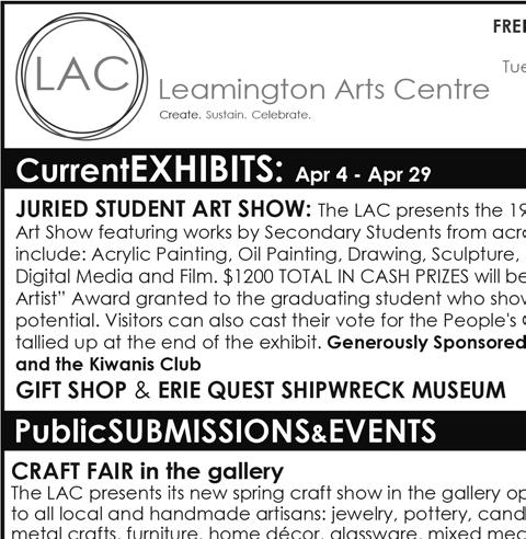 The Leamington and District Chamber of Commerce is also looking for volunteers to serve as Ambassadors at the Leamington tourist booth (the Big Tomato). There is a training session planned for April 26 at the Half Century Centre. If you have some spare time and can help, please contact Wendy at the Chamber office.