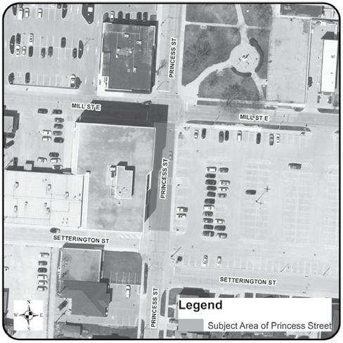 The proposed closure to vehicular traffic would allow the owners of 33 Princess Street to develop a landscaped greenspace on Princess Street between the east side of the building and the municipal parking lot from Mill Street to Setterington Street.