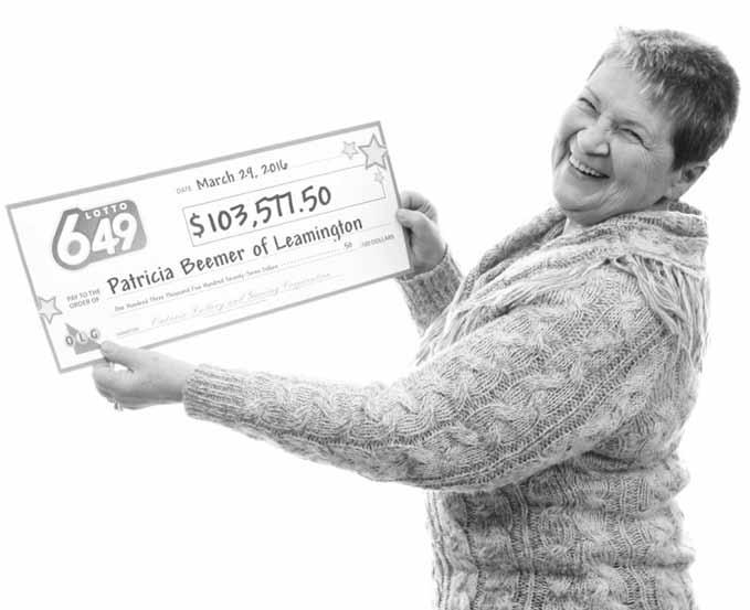 Patricia Beemer of Leamington is celebrating after winning $103,577.50 from the March 16, 2016 LOTTO 6/49 draw.