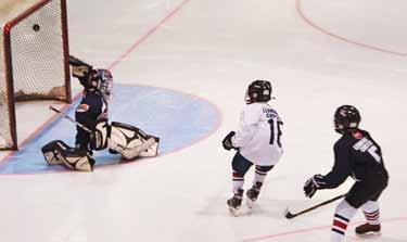 outshot the Nationals 22-4. David Storey tied the score with the game’s only power play tally, taking a pass from Matthew Opblinger and blasting a slap shot into the top left corner of Hughes’ net while stationed to the left side of the net and about 20 feet out.
