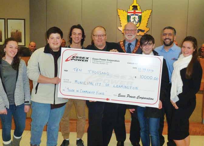 Mr. Joe Barile, general manager of Essex Power, was present at the Council meeting Monday evening, Feb. 8 to present a cheque for $10,000. The money is intended to be used for Youth in Community Projects.