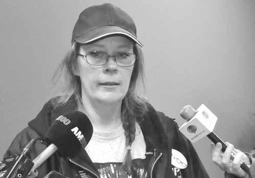 Lori Wightman, unit chair of CUPE 2974.0, speaks to the media following a ratification vote last Thursday. The library workers ratified the new four-year contract with 70 per cent voting in favour. (Photo by Ron Giofu)