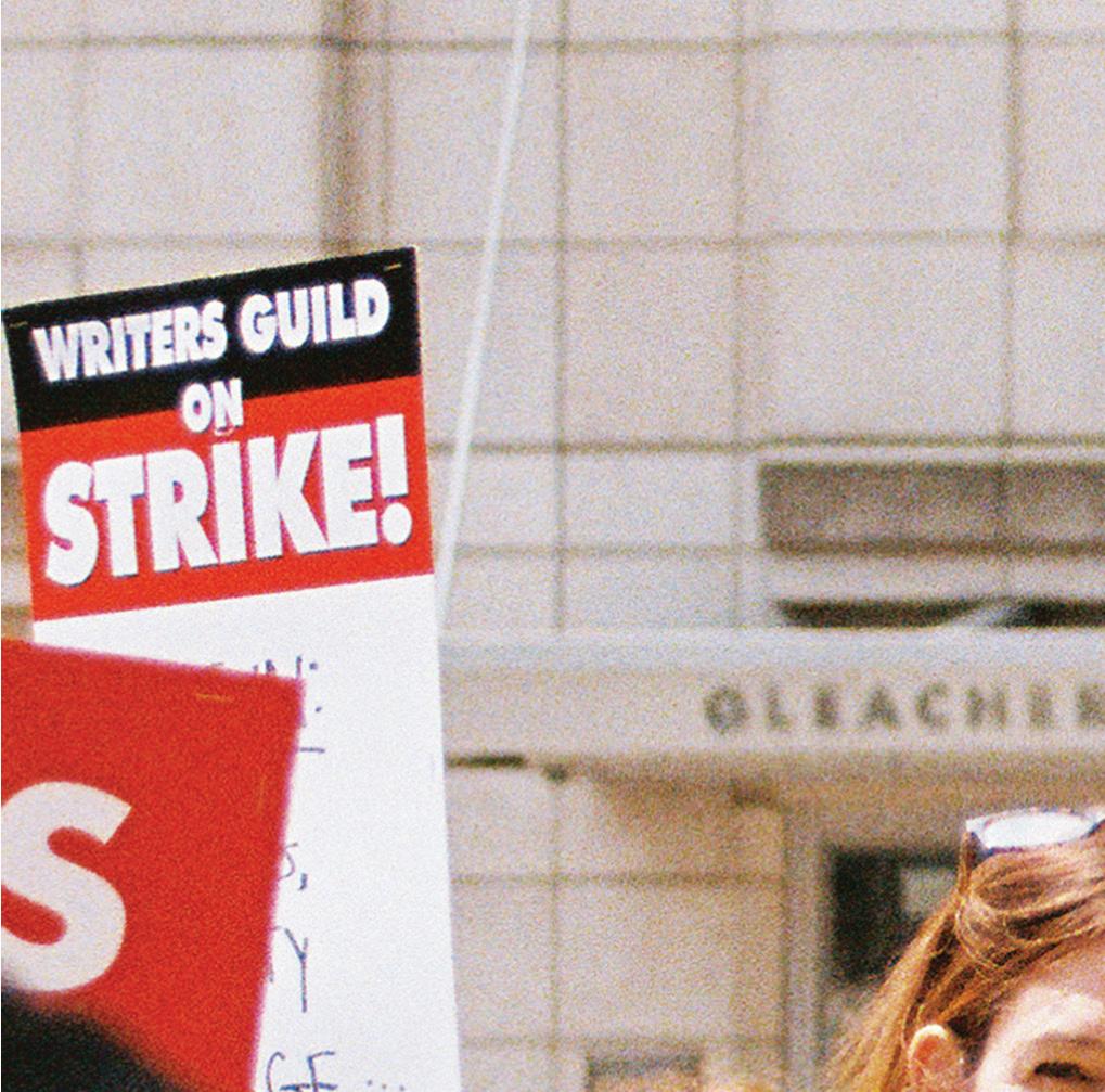 writers strike for equity in film and tv industry Hundreds join picket lines in Chicago to support the Writers Guild of America. alycia kamil moaton .............................. 9