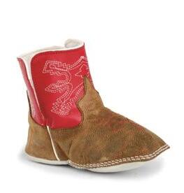 Ladies 13” fuchsia goat leather shaft, cider brown roughout vamp, cutter toe, cowboy heel and leather sole.