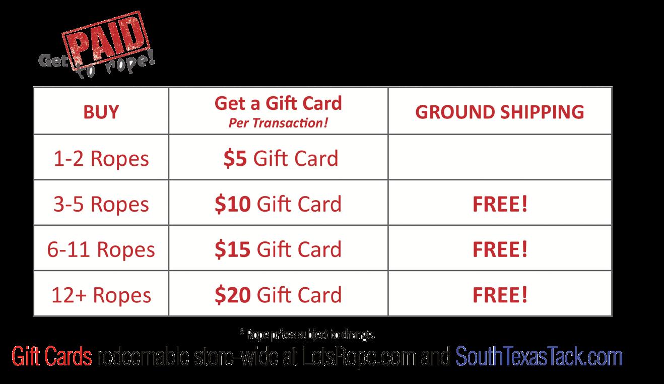 When you join the community, you receive member discounts and special offers. All Let’s Rope gift cards and e-certificates may be redeemed store-wide at LetsRope.com, Southtexastack.com, and at the store in Brenham, Texas.