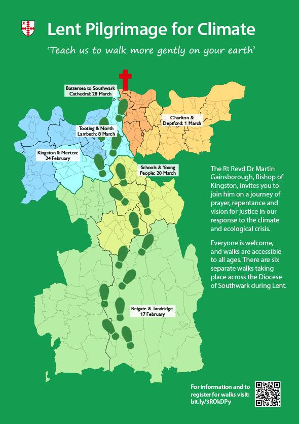 LOCAL – Lent climate pilgrimage walks. The Bishop of Kingston invites you to a journey of prayer, repentance and vision for justice, in response to the climate crisis. Four walks across the diocese take place in March. Each explores a different theme. All welcome. Register at: bit.ly/3SWud4E