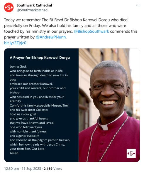 It was with great sadness last month that I announced the death of a dear brother in Christ and friend, The Rt Revd Dr Karowei Dorgu, Bishop of Woolwich since 2017.