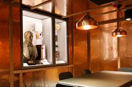 The ground floor is a beautiful openplan area filled with plants and with bottles lining the walls. Downstairs is a cellar which is open at weekends and can also be booked for private events.