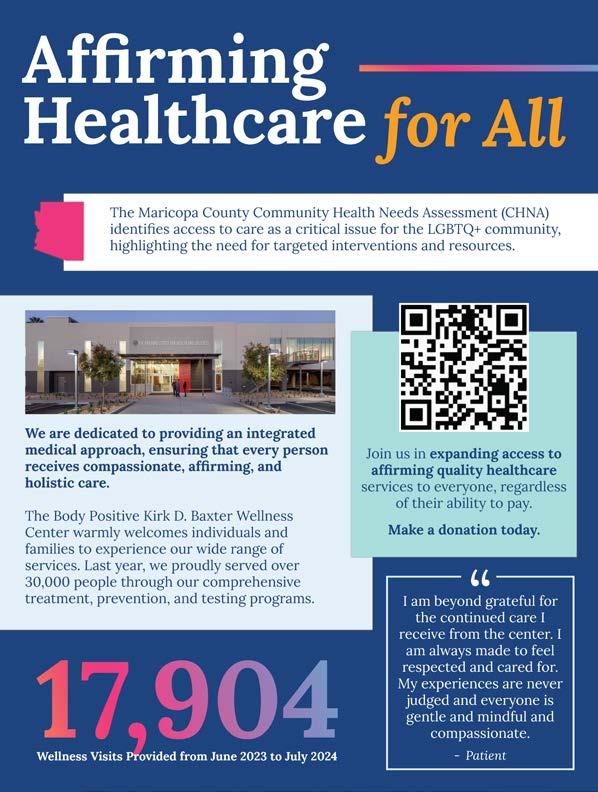 Tonight, we are gathered to celebrate and more than that commit to supporting affordable, affirming, and inclusive healthcare to those who need it most, including our 2SLGBTQIA+ community here in Arizona.
