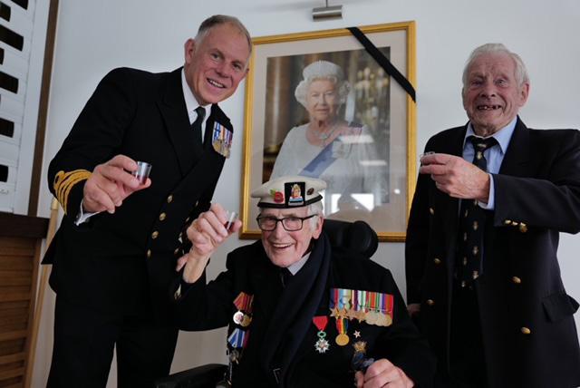 “It was a fantastic day and such an honour to be able to meet and host John and Tony and award them with Life Member ship of the Royal Naval Association. These gentlemen and their generation gave up so much for everyone and we take every opportunity to salute them”. They were presented with the Royal Naval Association Life Membership for their services in war, toasted with a tot of rum, followed by lunch and finally a boat trip around the harbour looking at all the magnificent ships including, the new aircraft carrier Prince of Wales.