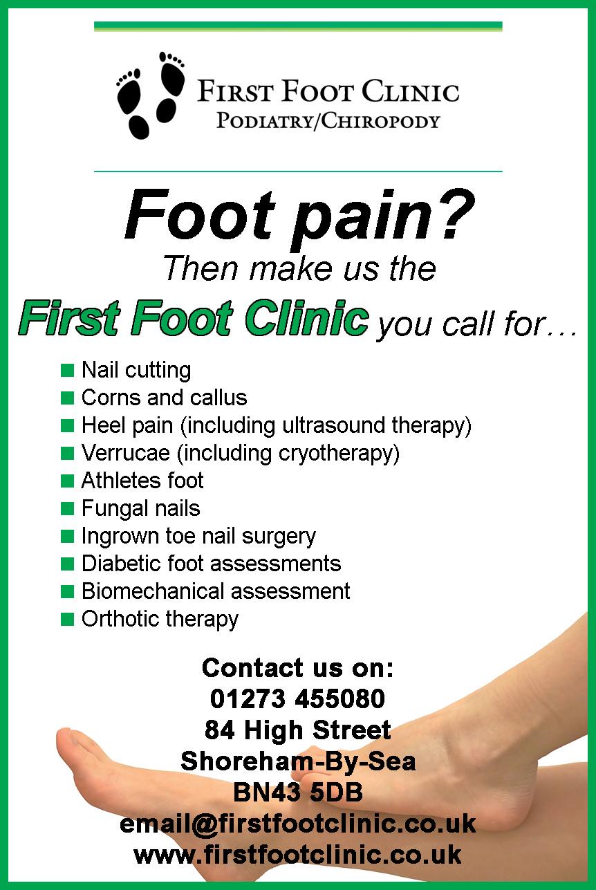 For further information about First Foot Clinic Ltd and the services we provide, please visit our website at www.firstfootclinic.co.uk, email us at email@firstfootclinic. co.uk or call us on 01273 455080