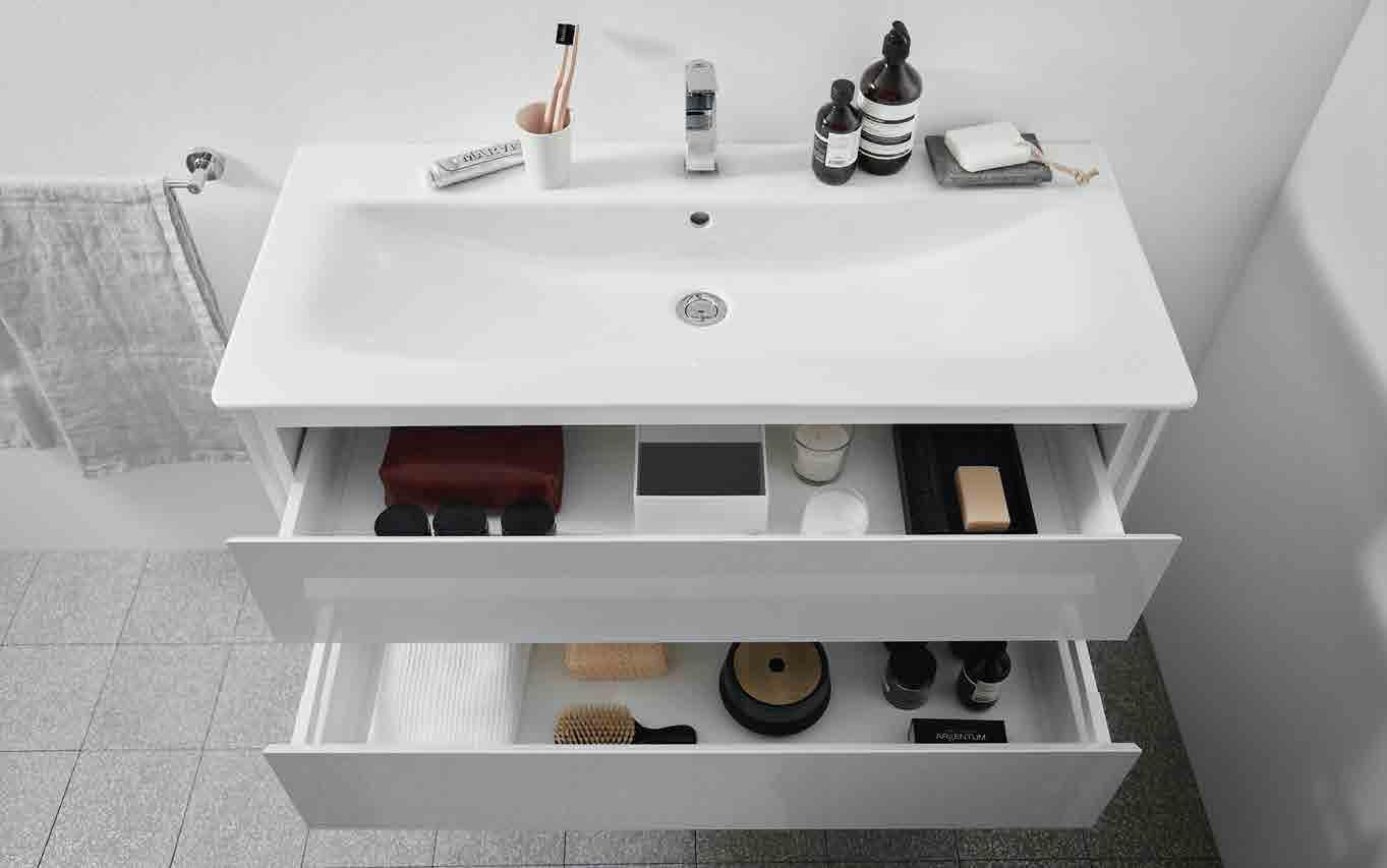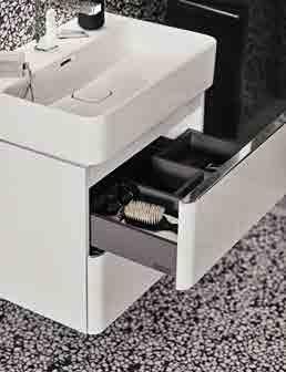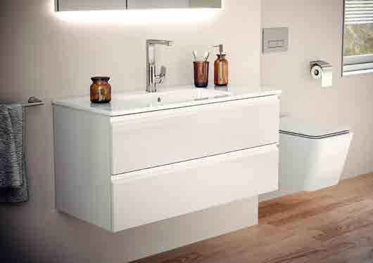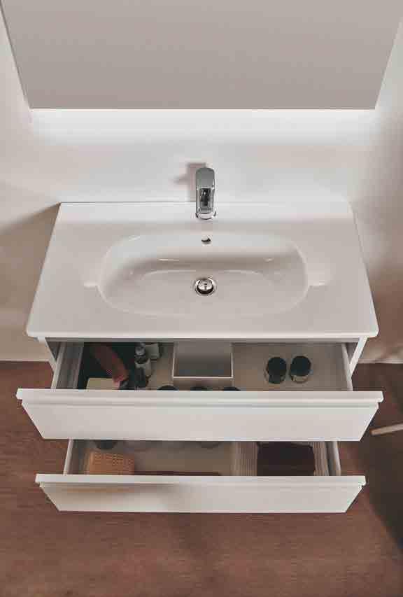 WITH VANITY UNITS IN A CHOICE OF WIDTHS, YOU CAN REALLY MAKE THE MOST OF YOUR SPACE. THE HANDLE-FREE DESIGN GIVES YOU AN UNBROKEN FLOW OF LINES AND CURVES. CLOSE YOUR DRAWERS AND CABINET DOORS WITH A TOUCH WITH THE PRACTICAL PUSH PULL SYSTEM.