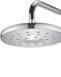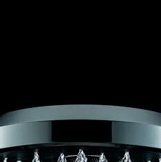 Invisible nozzles generate individual jets of water that collide against precisely angled surfaces hidden within the contours of the unique halo-shaped showerhead.