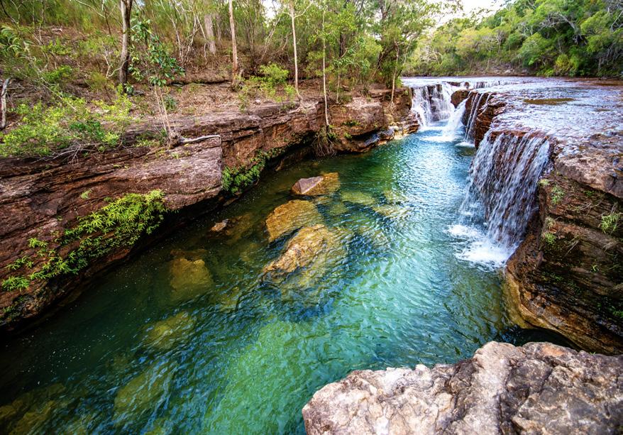 Amidst the rugged terrain, Cape York reveals its stunning beauty. Ancient rainforests teem with wildlife, while pristine waterfalls cascade into crystal-clear pools.