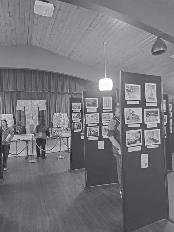 ジャパンタウン·ストリートの両側に40件以 上並ぶブースは、すでに片づけ作業に入っていたが、多くの展示品がある日本キリスト教会とソ ルトレイク仏教寺院はまだ開放されていた。どちらも1910年代に建てられた当日本町で唯一 現存する歴史的建造物だ。日系の歴史に関する資料が、パネルに整然と貼られて展示されて おり、ステージ上には着物、会場内の各所には、生け花や書道、盆栽、絵画などの作品が飾られ ていた。中でも、ある書道の作品が目に留まった。半紙とほぼ同幅で力強く大胆に書かれた「慈 悲」の2文字。ちょうどよいかすれ具合いと特徴的 に書かれた「いとがしら」に惹かれたからだろうか。