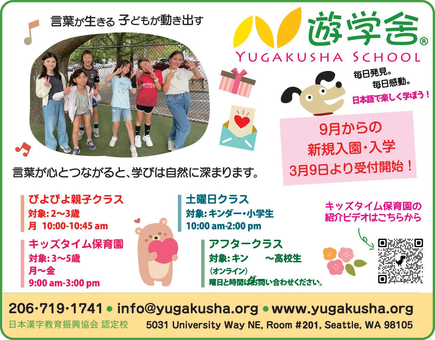 日本語教育機関、2026年度入学案内 シアトル近郊で日本語教育を行う学校・幼稚園の 新年度に向けた入学・説明会情報。各校の詳しい紹 介は、特集(P10~11)にて。