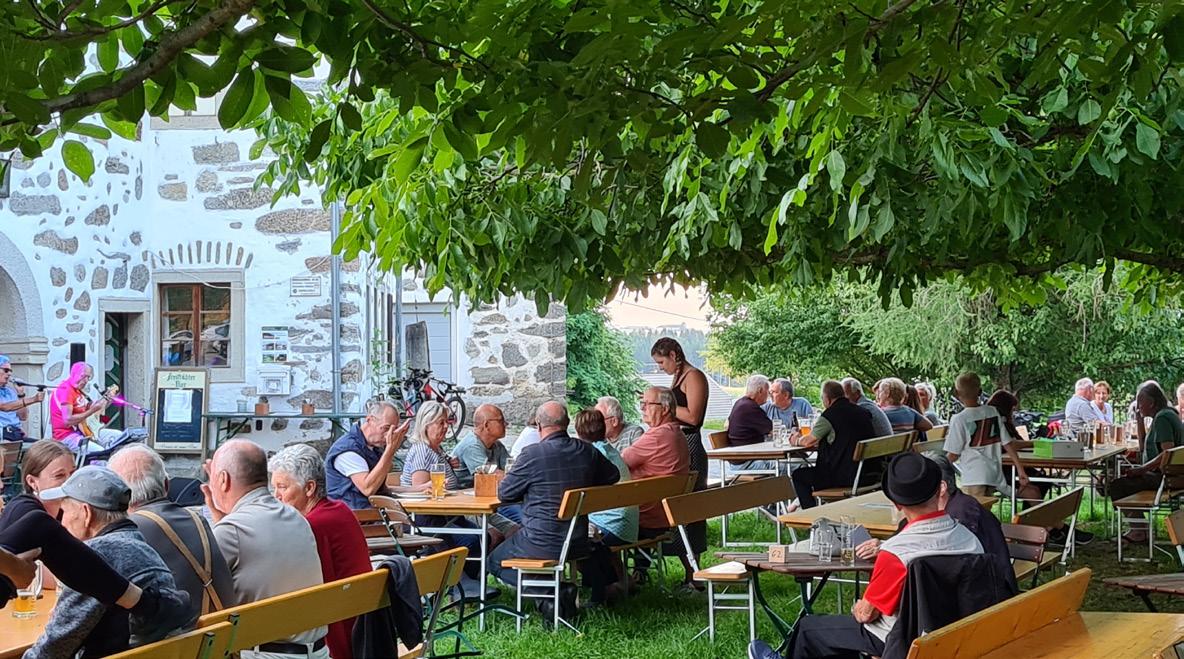 Nach der Jahreshauptversammlung im Jänner 2023 haben wir im Februar das Kellertheater in Linz besucht. Das Theater war ausverkauft, das Foto stammt aus der Pause. Im April ging es dann in das Brucknerhaus . Das Johann Strauß Orchester aus Wien erfreute unsere Ohren. Im Mai probierten wir das Bogenschießen in Windhaag bei Freistadt mit gutem Erfolg. Beim Swingolfen im Juni hat uns ein Gewitter überrascht, daher gibt es leider keine Fotos. Den Bezirkswandertag in Gutau im August haben wir flott bewältigt und danach gab es eine Stärkung in der Höllberghalle. Im Kulturwirtshaus Pammer fand am Freitag, 7.Juli ein Dämmerschoppen statt. Wir verbrachten einen angenehmen und lebendigen Abend mit der Band AAG -alt aber gut. Die beiden Musiker Fritz Seiwald und Herbert Wiesinger brachten eine großartige Stimmung in den vollen Gastgarten. Die Veranstaltung war für den Pensionistenverband eine gelungene Werbung. Der Vorsitzende des Pensionistenverbandes Hirschbach, Fritz Wiesinger, hat die Gäste herzlich begrüßt. Es haben viele gute Gespräche stattgefunden, was darauf schließen lässt, dass die Musik den Geschmack der Gäste traf.