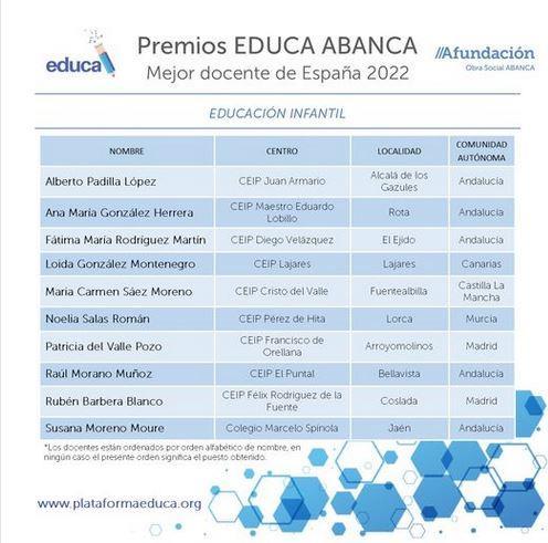 Desde la plataforma EDUCA se convocan anualmente los Premios EDUCA a los Mejores Docentes de centros públicos y privados de España con el fin de reconocer públicamente la labor de los grandes docentes que viven y disfrutan su trabajo, educan para la vida a su alumnado y se involucran al máximo en todo el proceso educativo, tanto dentro como fuera del aula. La convocatoria es anual y ya es un referente dentro de la sociedad española.