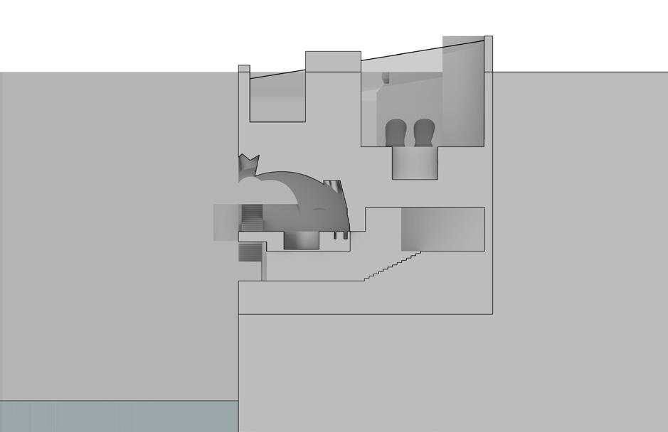 The Rewarding Waters is a bathhouse carved into the side of a cliff along the Hudson River (Palisades, NJ, USA). It’s a spa spot for travelers to unwind in various temperatures: hot, warm, and cold. These temperatures are regulated within the bathhouse based on the color of the space in which they’re contained. In other termsthe warmer the color of the space, the warmer the temperature, and vice versa.