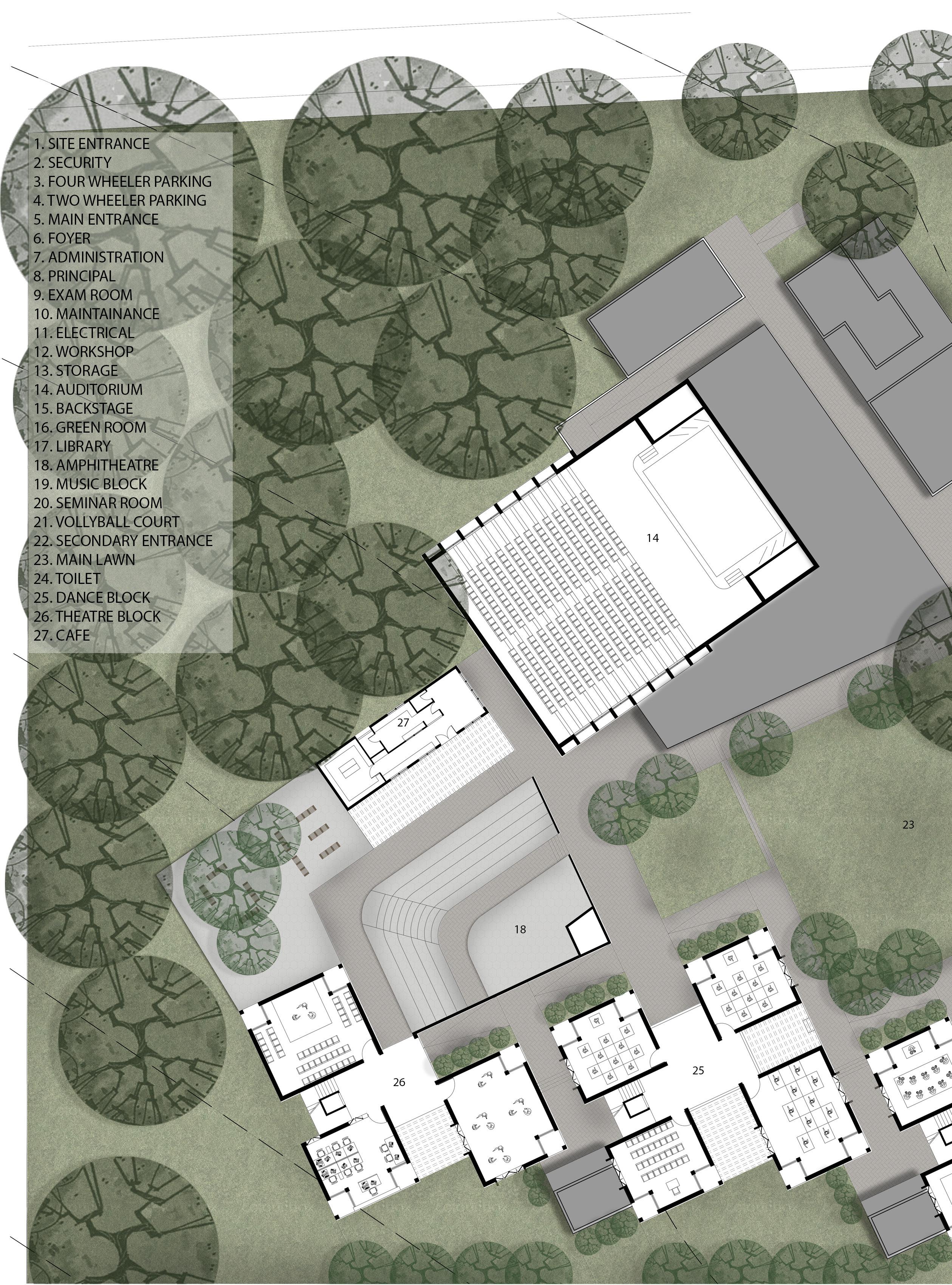 The aim of the studio was to design a performing arts institute in the context of Ahmedabad. The design should consist of all the necessary spaces that any art institue demands.