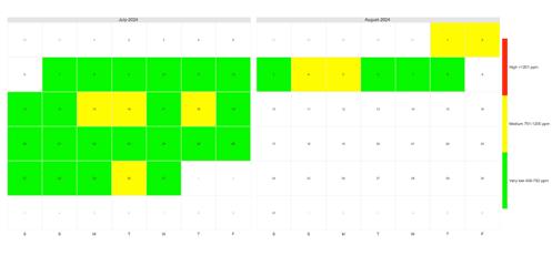 While the ACT Government says less than 5% of Canberra households burn wood primarily for domestic heating, the 2023 ACT State of the Environment Report said that wood heaters account for more than 70% of fine particle air pollution in Canberra and are responsible for the majority of breaches in air quality standards. Consistent with this, a citizen scientist recorded real time peak levels of fine particle air pollution (woodsmoke) in their neighbourhood in Canberra’s Tuggeranong Valley at 260 micrograms per cubic meter at 8pm on 6 July 2024. This reading from an outdoor weather station was rated as hazardous and included a health warning for all neighbourhood residents. The accepted daily average for air pollution in Australia is 25 micrograms per cubic meter. Canberra’s Tuggeranong Valley had already been identified by the Commonwealth Scientific and Industrial Research Organisation’s, Dr Melita Keywood, as the second most polluted residential area in Australia behind Launceston Tasmania.