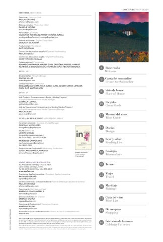 Contenido / CONTENTS Editorial / editorial Directora / Editor-in-Chief PAULA FONTAINE pfontaine@spafax.com Editora ejecutiva / Executive Editor DANIELA VICUÑA dvicuna@spafax.com Periodistas / Journalists valentina rodríguez; María Victoria zúñiga vrodriguez@spafax.com / vzuniga@spafax.com Editora de idioma / English Copy Editor deborah meacham Traducciones / Translation Kate Goldman Corrección de pruebas español / Spanish Proofreading Paula Lozano Corrección de pruebas inglés / English Proofreading Christopher charman Colaboradores / Contributors eduardo bretahuer; walter duer; Cristóbal fredes; HARRIET NAHRWOLD; santiago sahli; Patricio Tapia; HÉCTOR VERGARA.