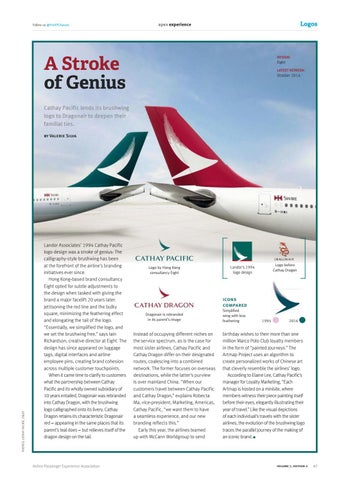 birthday wishes to their more than one million Marco Polo Club loyalty members in the form of “painted journeys.” The Artmap Project uses an algorithm to create personalized works of Chinese art that cleverly resemble the airlines’ logo. According to Elaine Lee, Cathay Pacific’s manager for Loyalty Marketing, “Each Artmap is hosted on a minisite, where members witness their piece painting itself before their eyes, elegantly illustrating their year of travel.” Like the visual depictions of each individual’s travels with the sister airlines, the evolution of the brushwing logo traces the parallel journey of the making of an iconic brand.
