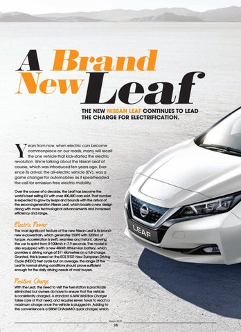 ears from now, when electric cars become commonplace on our roads, many will recall the one vehicle that kick-started the electric revolution. We’re talking about the Nissan Leaf of course, which was introduced ten years ago. Ever since its arrival, the all-electric vehicle (EV), was a game changer for automobiles as it spearheaded the call for emission-free electric mobility. Over the course of a decade, the Leaf has become the world’s best selling EV with over 400,000 cars sold. That number is expected to grow by leaps and bounds with the arrival of the second-generation Nissan Leaf, which boasts a new design along with more technological advancements and increased efficiency and range.