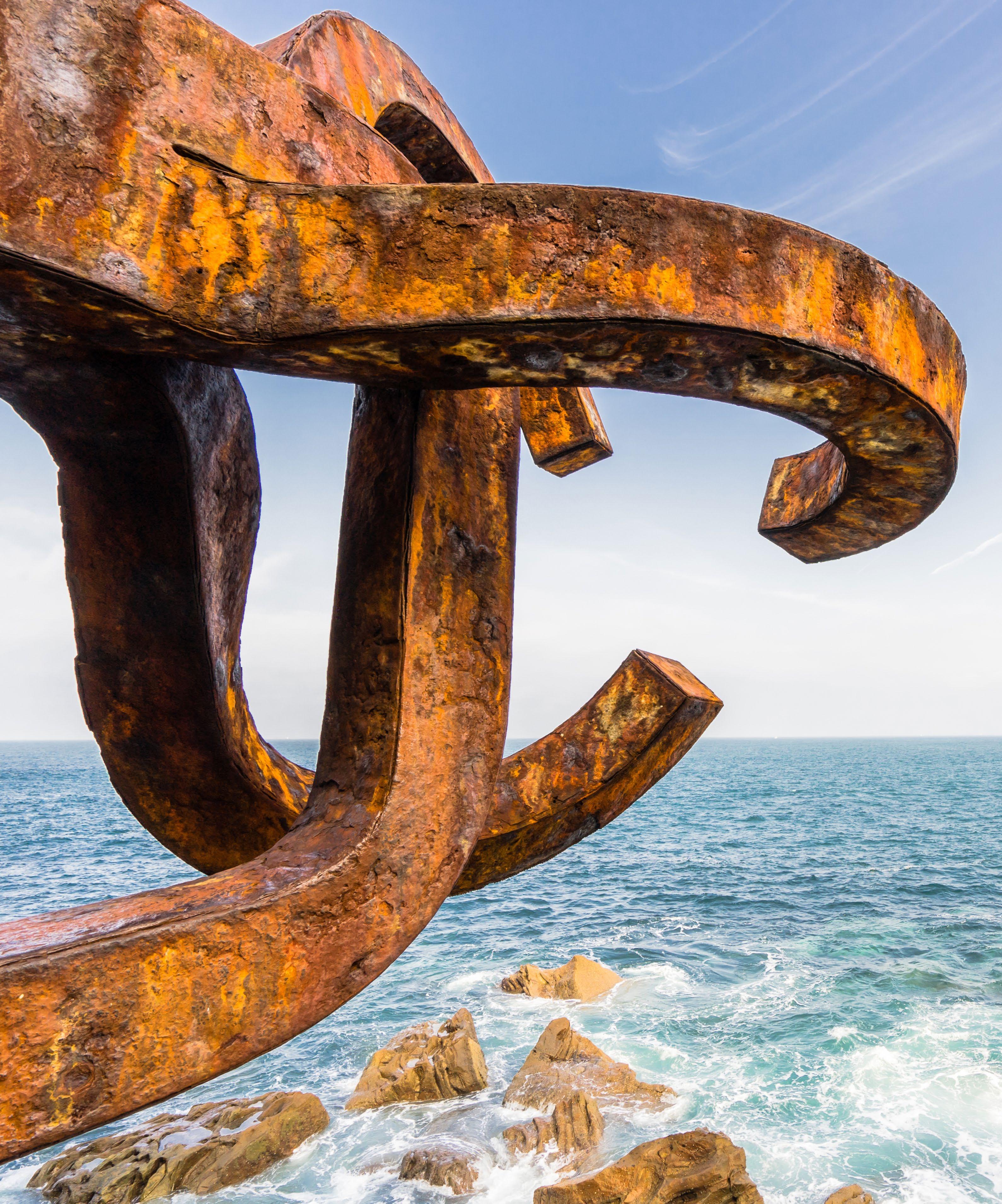 Acércate al Peine del Viento de Eduardo Chillida y a la Construcción Vacía de Jorge Oteiza y descubre dos esculturas de arte contemporáneo que desafían la fuerza de las mareas.