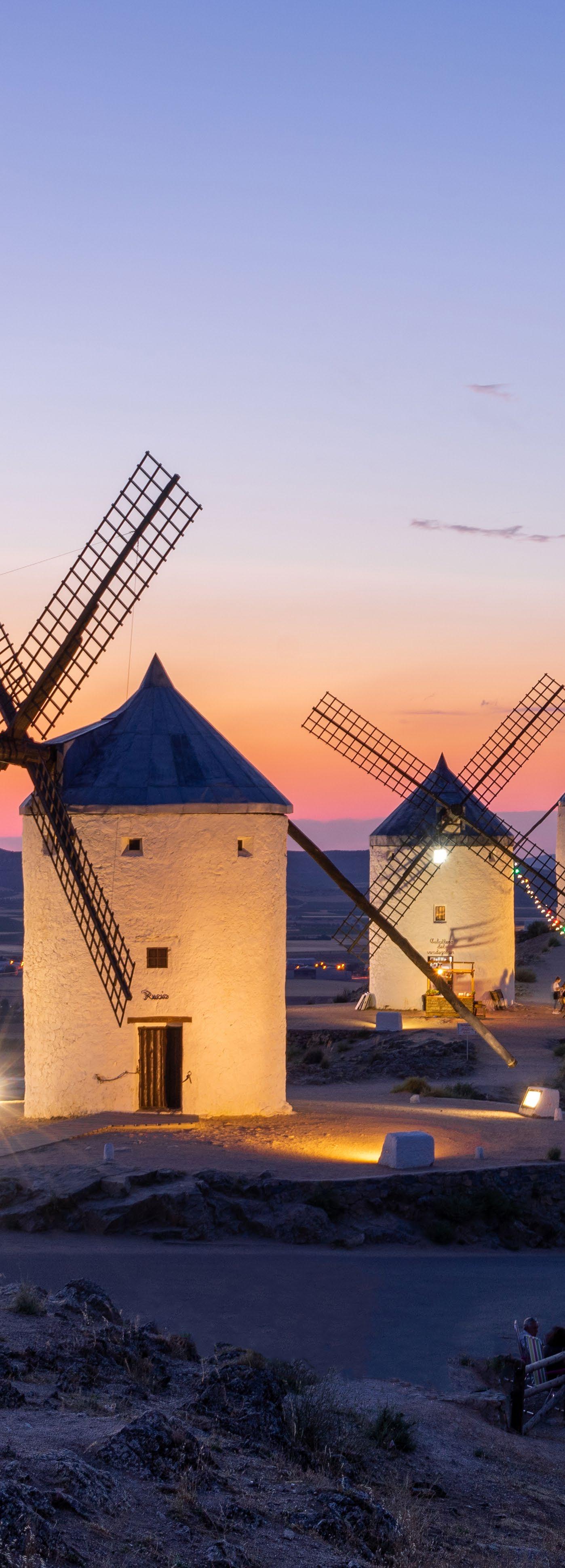 Die Route des Don Quijote führt Sie zu den Stellen, an denen dieser berühmte, von Miguel de Cervantes geschaffene Romanheld, seine Ritterabenteuer erlebte. Folgen Sie den Spuren jahrhundertealter Villen, Windmühlen, legendärer Burgen, Weinberge und herrlicher Naturräume, die über Kastilien-La Mancha, Aragón und Katalonien verstreut sind.