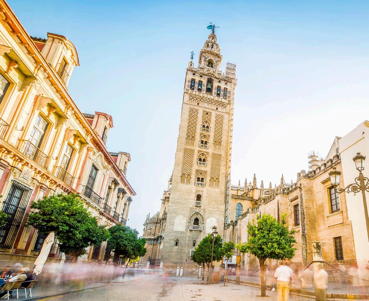 Der zum Weltkulturerbe erklärte Glockenturm der Kathedrale Santa María de la Sede in Sevilla ist das Minarett der ehemaligen arabischen Moschee. Mit 104 Metern Höhe war es mehr als 800 Jahre lang das höchste Gebäude der Stadt. Klettern Sie die Rampen bis zu den Glocken hinauf und genießen Sie einen herrlichen Blick auf die andalusische Hauptstadt.