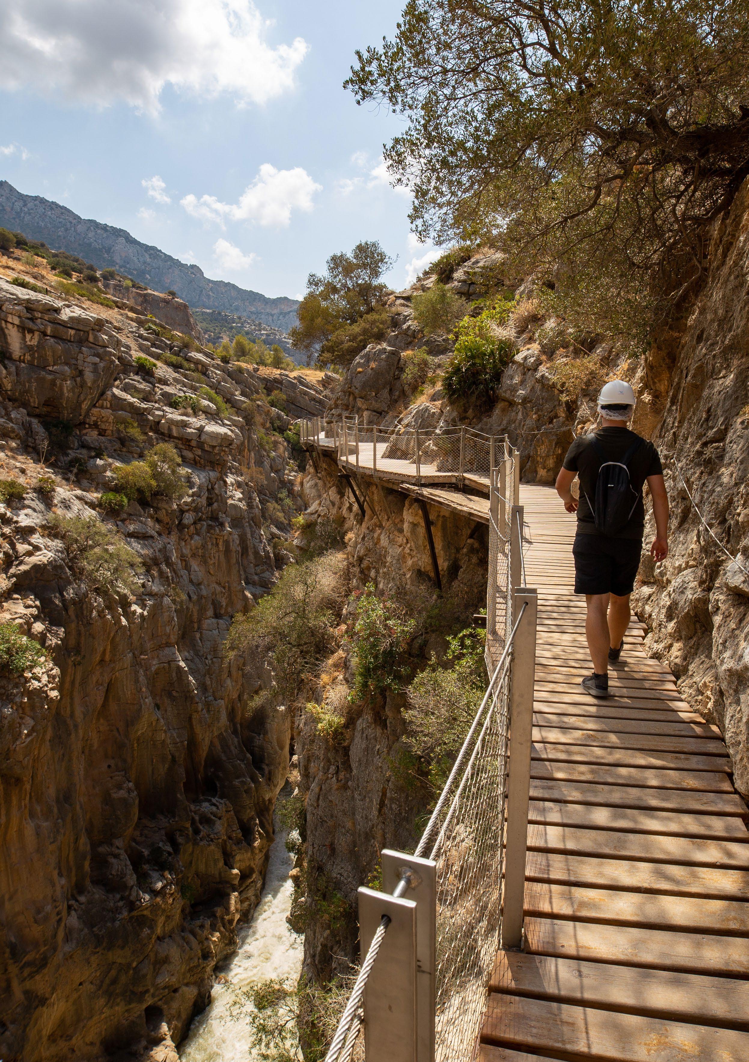 Diese 7,7 Kilometer lange Route führt über Stege und Brücken, die bis zu 100 Meter hoch sind, durch die Schlucht von Los Gaitanes im Herzen der Sierra de Málaga. Ein eindrucksvolles Erlebnis! Nicht geeignet für nicht schwindelfreie oder mobilitätseingeschränkte Personen. Eine vorherige Anmeldung ist erforderlich.
