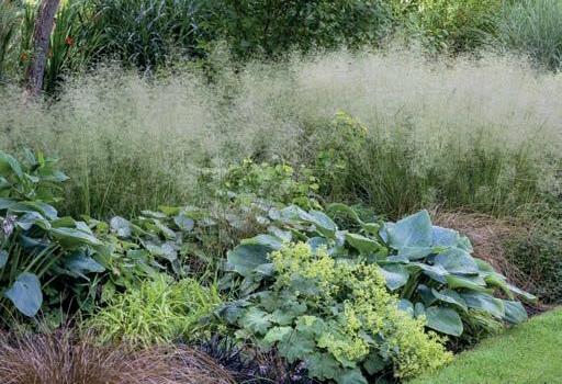 Aptly named and richly deserving its RHS AGM. This slower growing grass forms a neat clump of tightly packed stems with slender grassy leaf blades, and stems bearing a cascade of silvery plumes fading to buff.