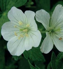 A recent introduction this selection forms a dense, compact mound of deeply cut foliage with shorter, stout stems carrying larger, pure white flowers through summer.