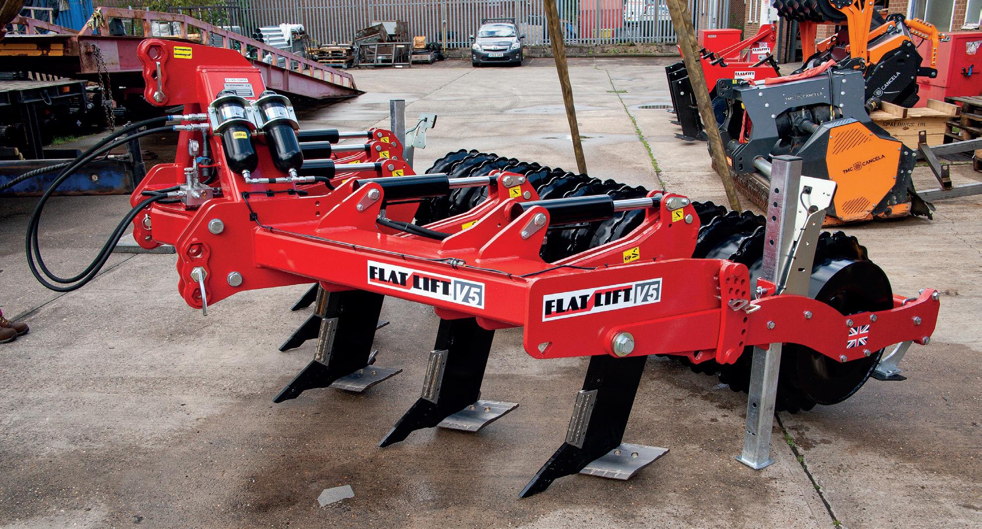 The addition of a disc cultivation tool-bar turns the standard Flatlift subsoiler into a single pass cultivator. Two rows of opposing conical cutaway discs chop and mix the loosened top soil to a depth of up to 4", efficiently mixing stubble and crop residues while maintaining a level finish.