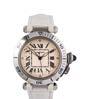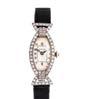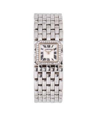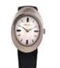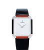Quadrante a nido d’ape bianco con raffigurazione centrale coperta da smalto. Sfere dauphine dorate, indici dorati. Bracciale elastico in acciaio placcato oro. Vetro plexiglass bombato, fondello a vite.