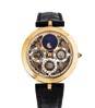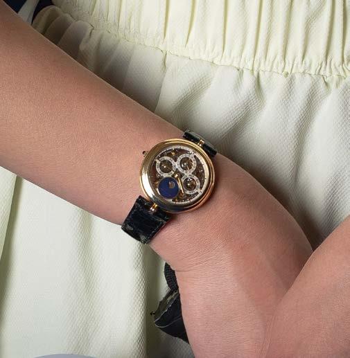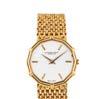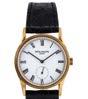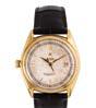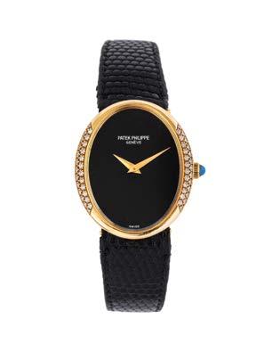 Note: Orologio solo tempo in oro giallo 18kt. Quadrante bianco, indici romani, sfere a bastone, piccoli secondi ad ore sei. Ghiera ‘clou de Paris’. Fondello a pressione. Cinturino in pelle, fibbia in oro giallo 18kt Patek Philippe.