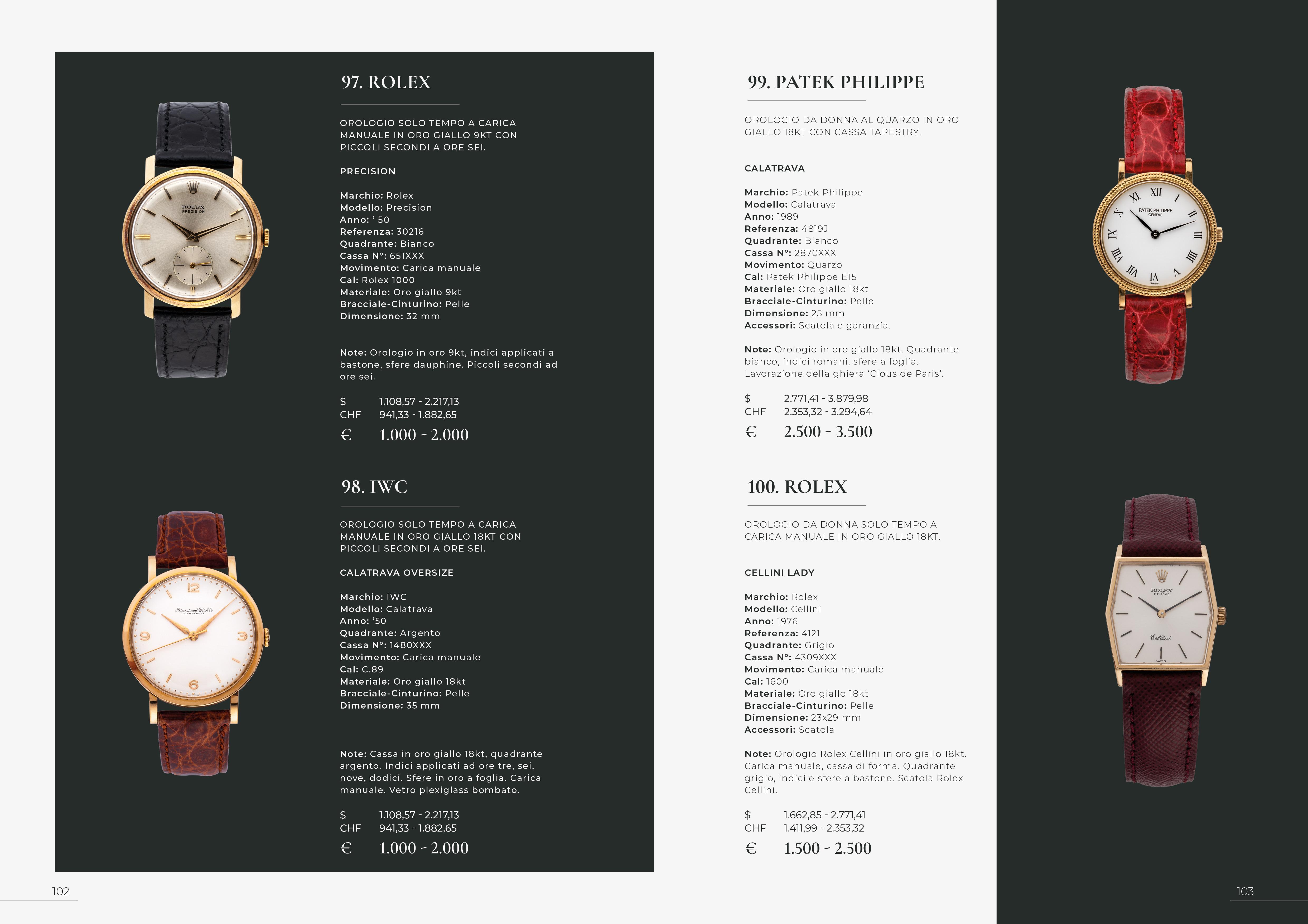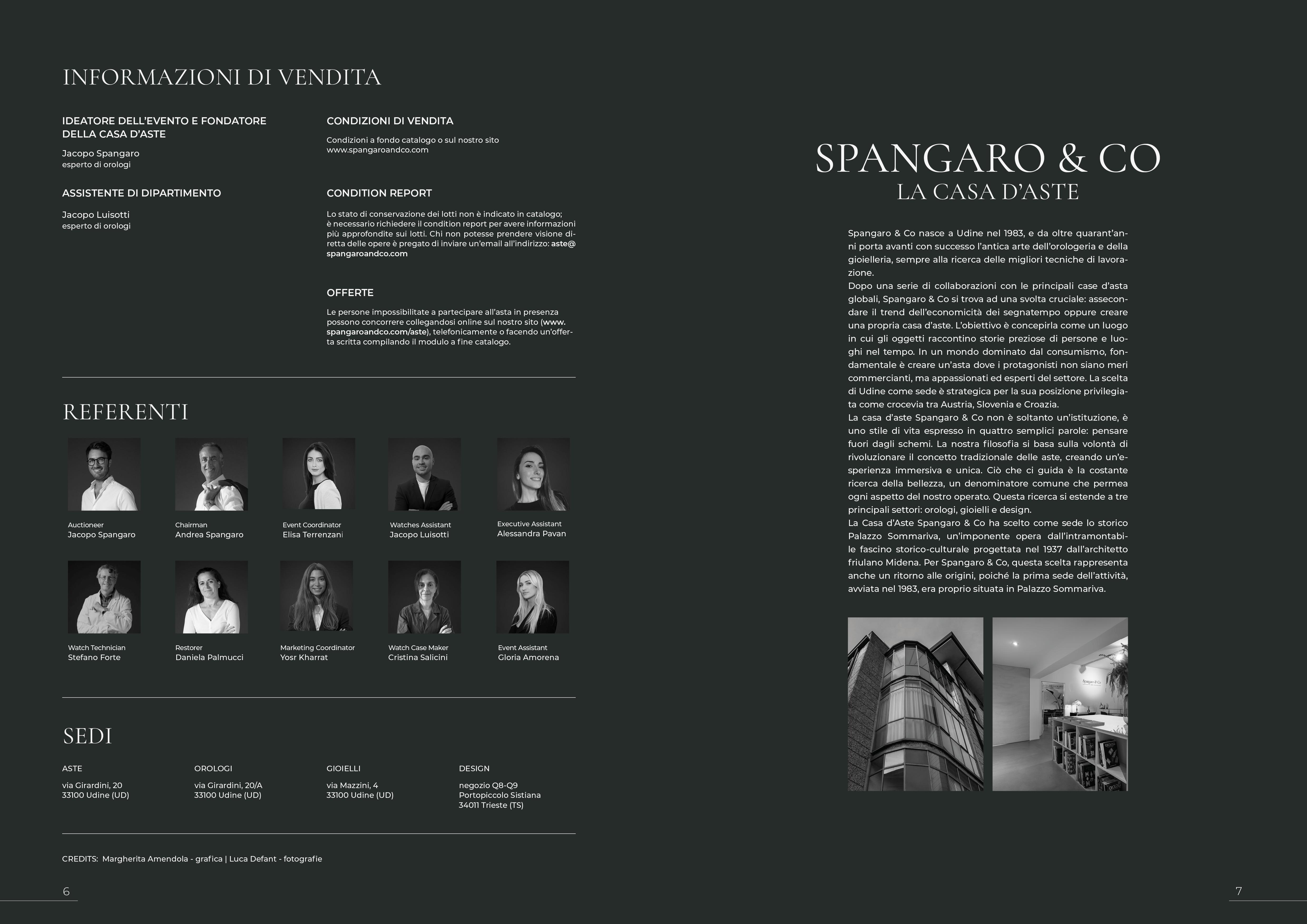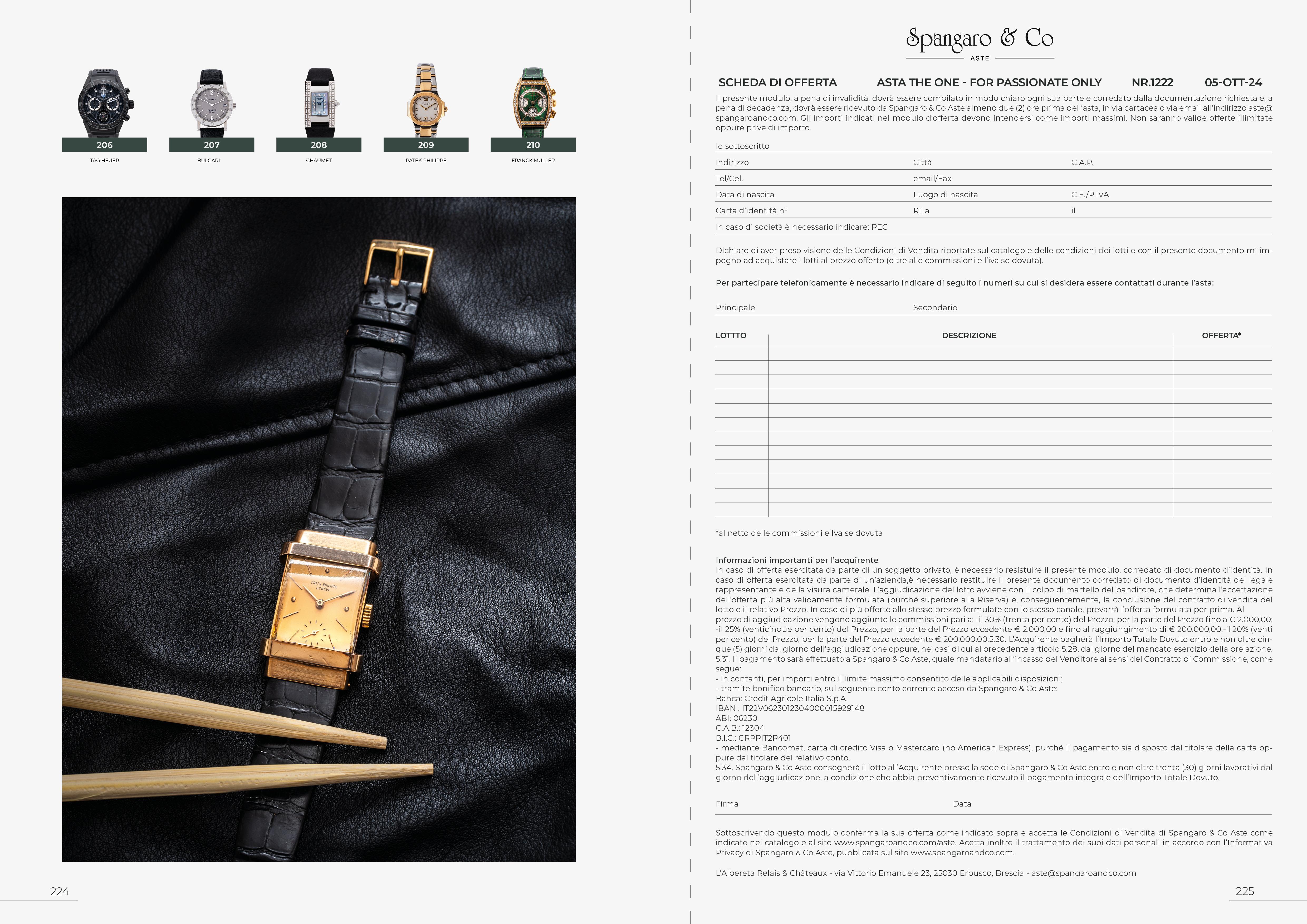 Spangaro & Co Casa d’Aste presenta l’Asta-evento di Orologi delle più prestigiose maison internazionali tra cui Audemars Piguet, Cartier, Jaeger Le Coultre, Patek Philippe, Omega e Rolex.