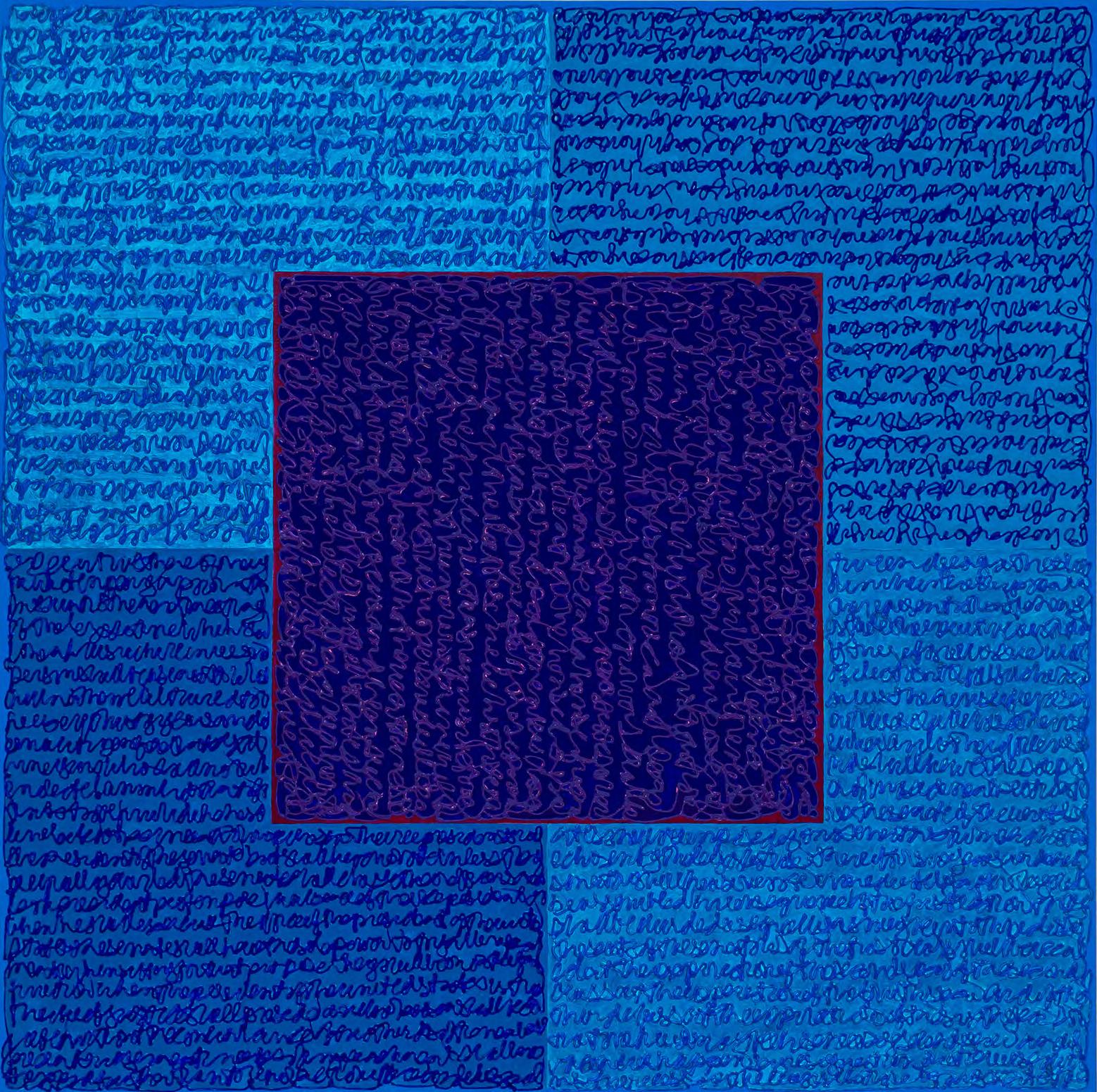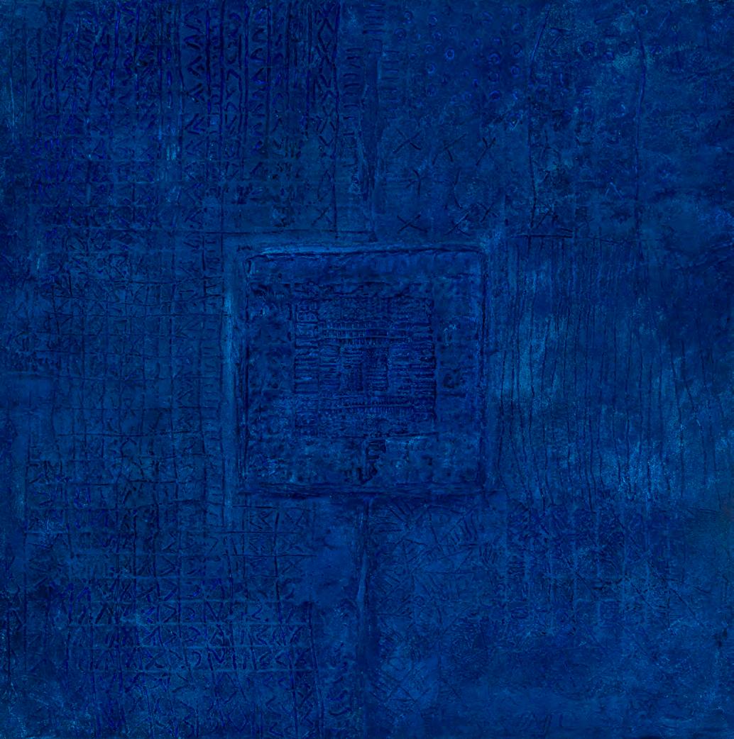 MoodyBlues, 2019, Acrylic paint and paste on linen, 48 x 48 inches