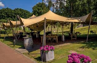 Proosten en borrelen onder onze sfeervolle tent? Of wat dacht je ervan om buiten romantisch te dineren? Onze prachtige tent heeft een grote afmeting van 10 x 18 meter.